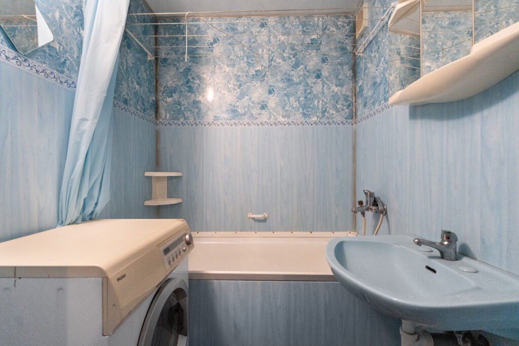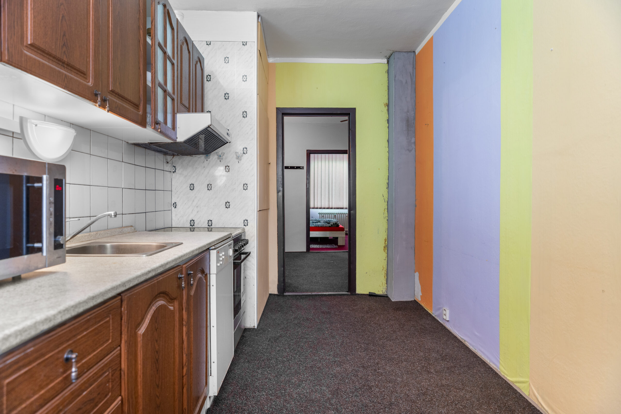 Byt je před rekonstrukcí – původní kuchyňská linka i původní koupelnové jádro.