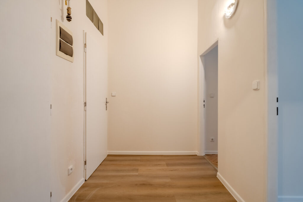 Vysoké stropy, parketové podlahy a původní detaily, které vytvářejí jedinečnou atmosféru