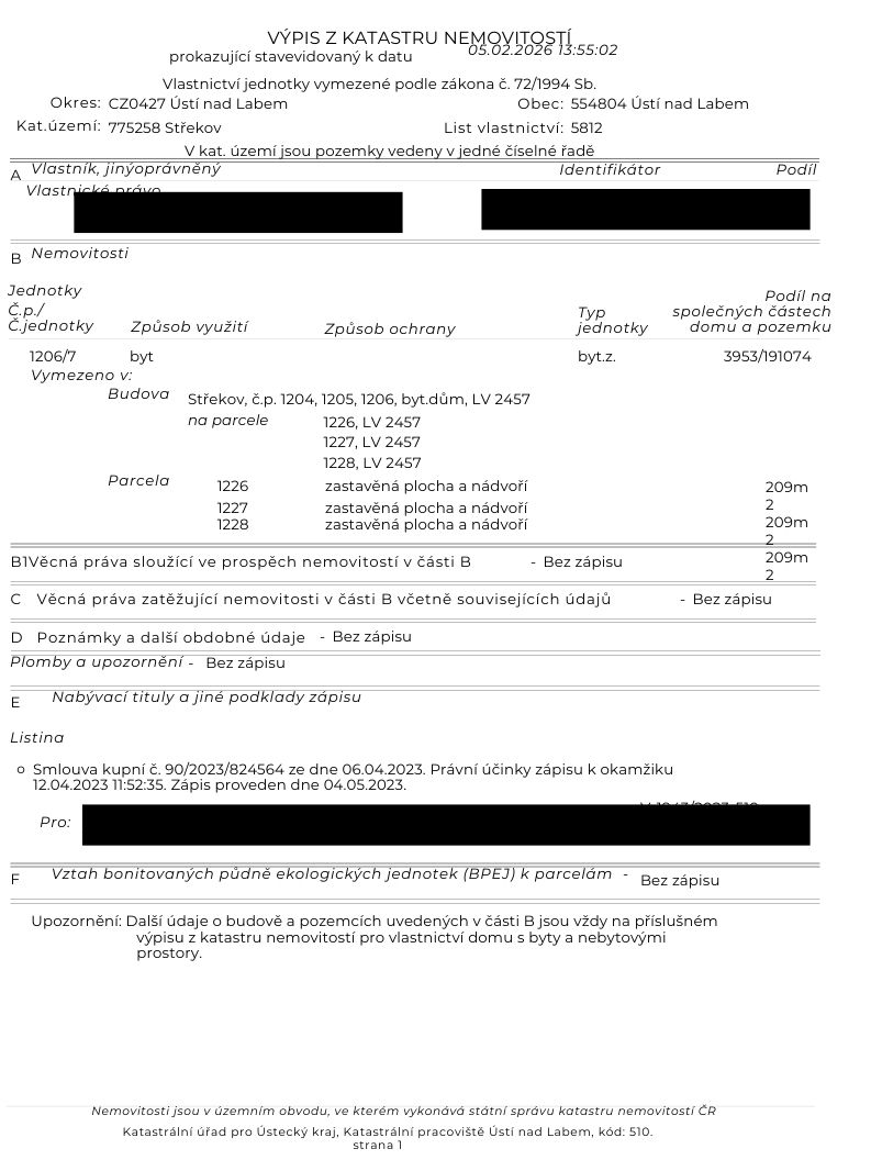 požadujeme prokazatelný příjem + standardní prověření bezdlužnosti